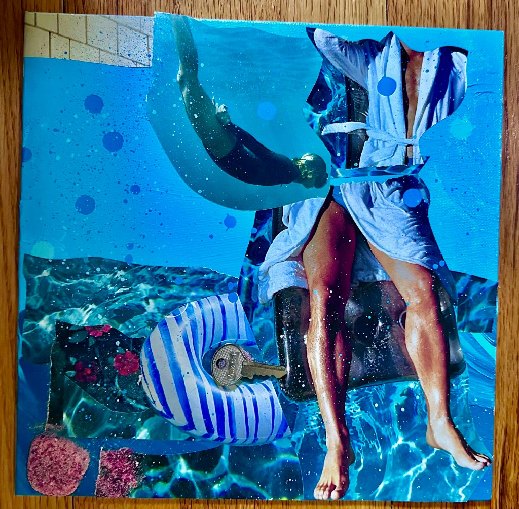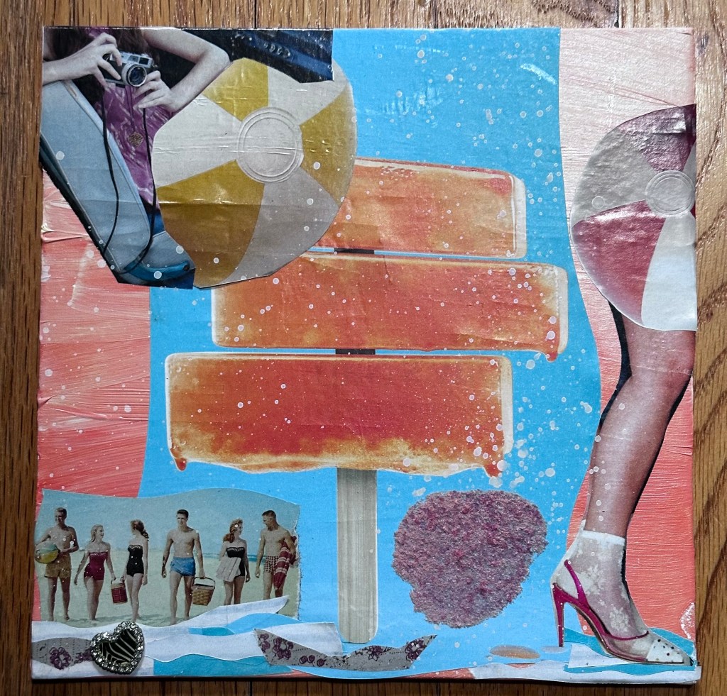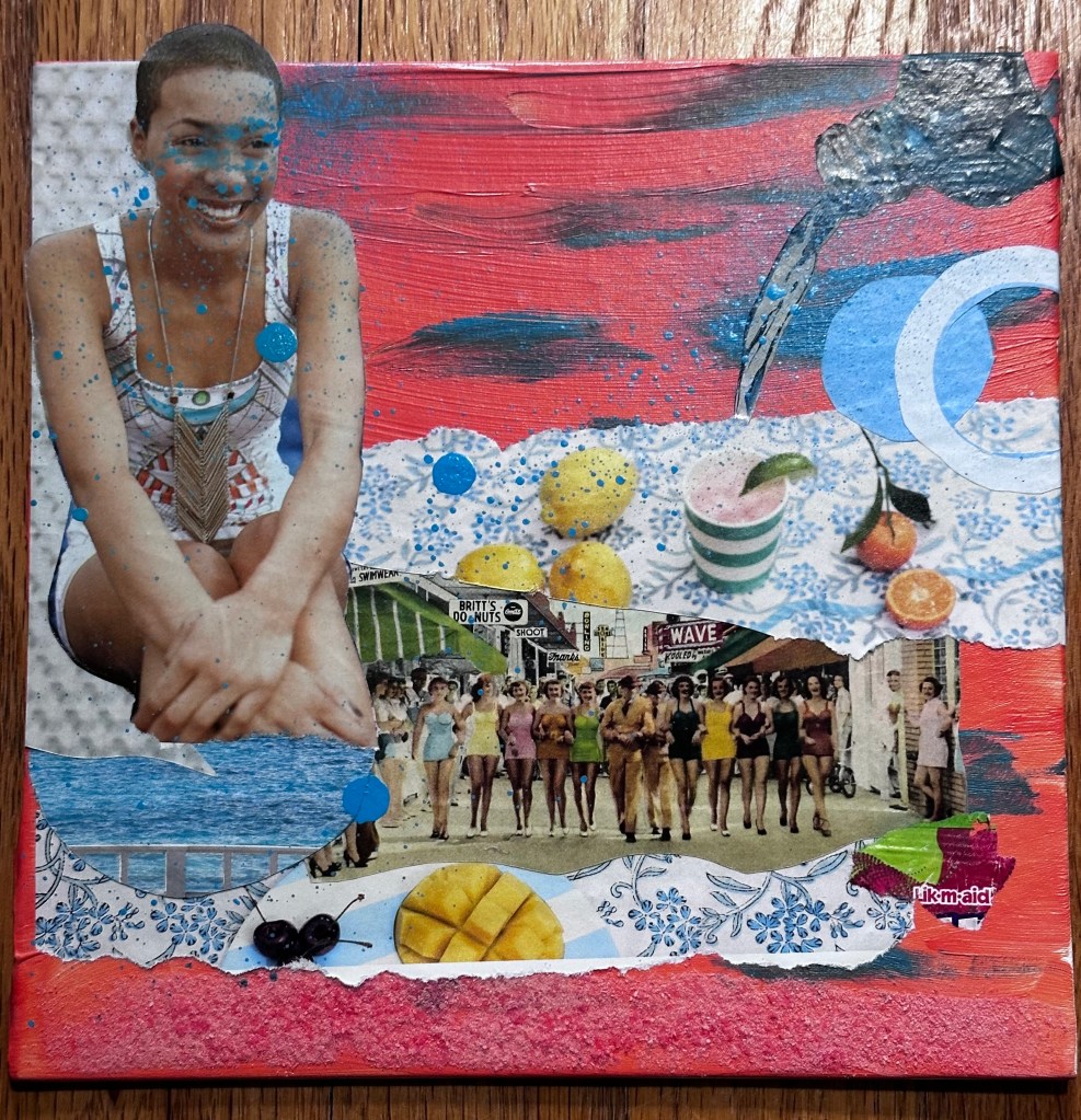 Diving IN, Mixed Media Collage, 2025Glowing Reviews, Mixed Media Collage, 2025Perspectives, Mixed Media Collage, 2025Sunsets & Slushies, Mixed Media Collage, 2025Under Currents, Mixed Media Collage, 2025