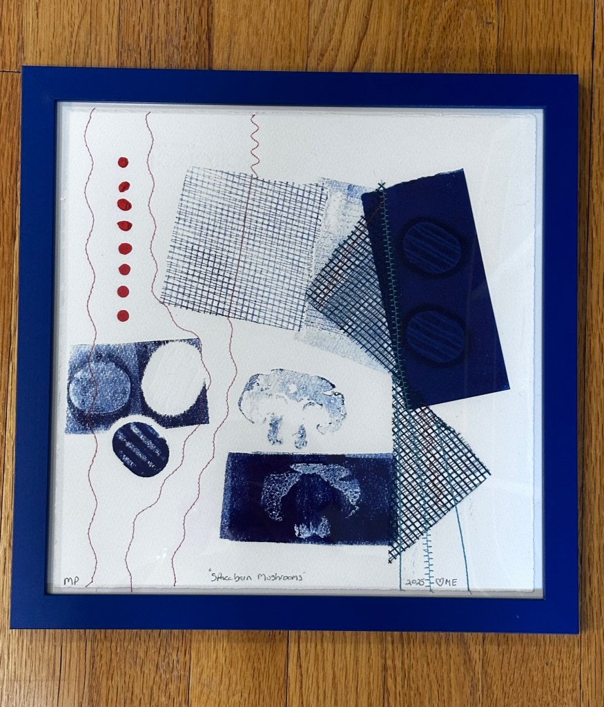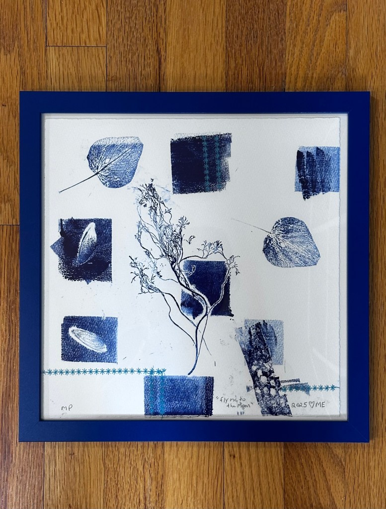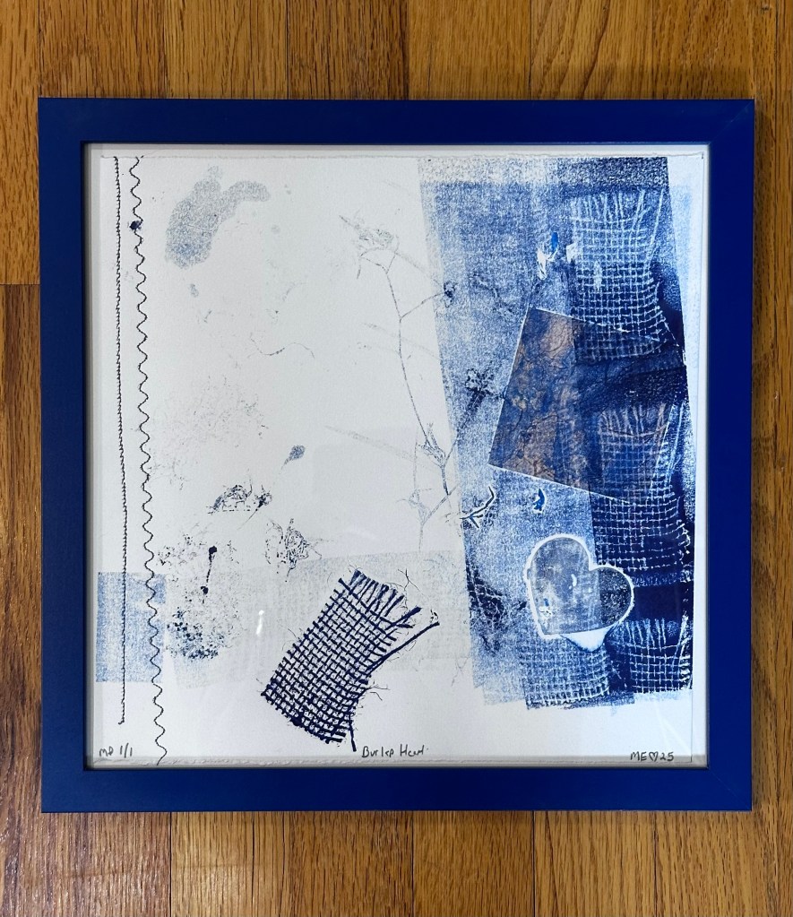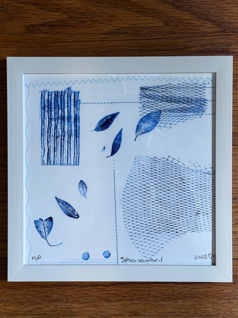“PermaFrost”, 2025, Monoprint, 11×11, $77 “Artic Blueberries”, 2025,Monoprint, 11×11, $77“End of Summer”, 2025, Monoprint, 11×11, $77“Fly me to the Moon”, 2025 Monoprint, 11×11, $77“SpaceBarn Mushrooms”, 2025 Monoprint, 11×11, $77“Burlap Heart”, 2025 Monoprint, 11×11, $77Space Weather .1, 2025, Monoprint, 8×8, $55